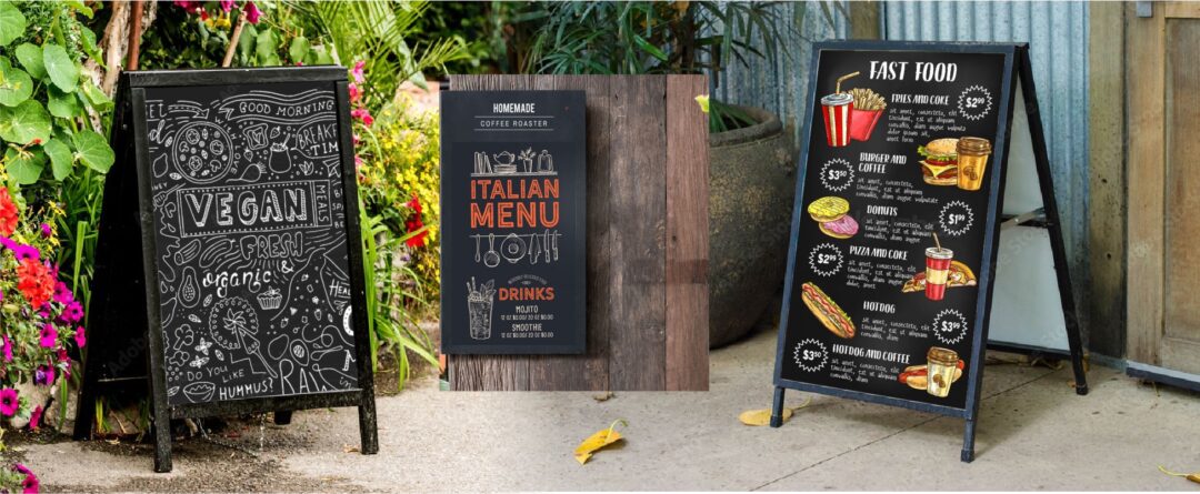 Stället är den stora favoriten bland kunder från restaurangbranschen då skylten utstrålar och varm hemtrevnadskänsla med sin design. Griffeltavlan är tillverkad i teak med matt svart betsad yta. Träramen har en plan modern profil. Tillverkade i Europa och är av högsta möjliga kvalitet för ett långt användande.